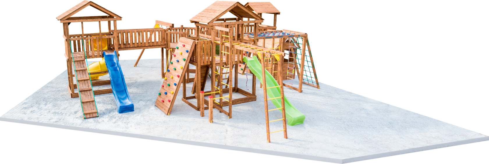 Подойдут модули Kidwill: горка, скалодром, рукоход, веревочная сетка, шведская стенка, домик, гимнастическая секция